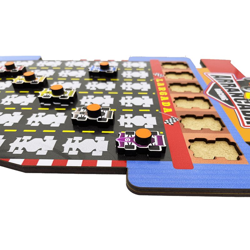 O jogo é composto de um tabuleiro, seis peças em formato de carrinhos de corrida numerados de 1 a 6 e um dado. Cada jogador lança o dado, e o carrinho que corresponder ao número sorteado no dado avança uma casa. O carrinho que chegar primeiro é o vencedor.Com o jogo a criança aprende de forma lúdica os números e quantidades.Este jogo promove a diversão, interação e a competitividade entre os jogadores.Chame seus amigos para esta corrida e organize a torcida! A Arrancada é composto por 1 Tabuleiro + 6 peças em formato de carro + 1 dadoFabricante: Artesanato ManinhoMaterial: MDFEmbalagem: PVC Encolhível Dimensões do produto embalado: 43,5 x 25 x 1 cm aprox.Peso aprox.: 0,540 kg A partir de 7 anos