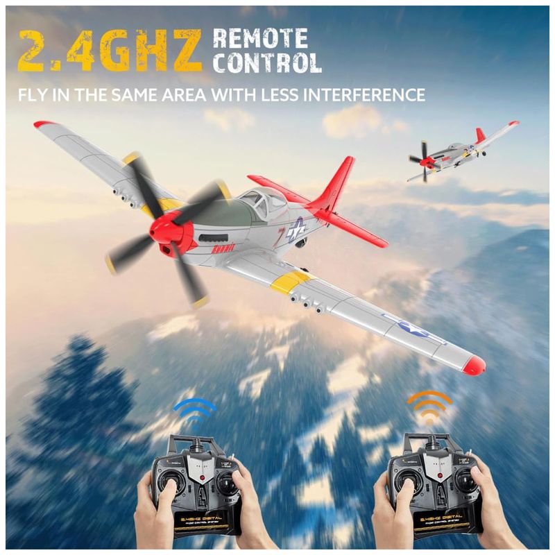 Controle Remoto Sem Fio de 2,4 GHz: Com um controle remoto sem fio de 2,4 GHz, este avião RC oferece uma distância máxima de controle de até 656 pés. Perfeito para aventuras ao ar livre e reuniões emocionantes do clube de aviação com amigos.