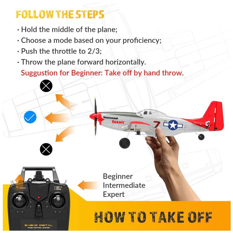 Montagem com um Clique: Totalmente montado e pronto para decolar em um minuto! Com uma montagem fácil, basta instalar as baterias no transmissor, e você estará pronto para explorar os céus em pouco tempo.