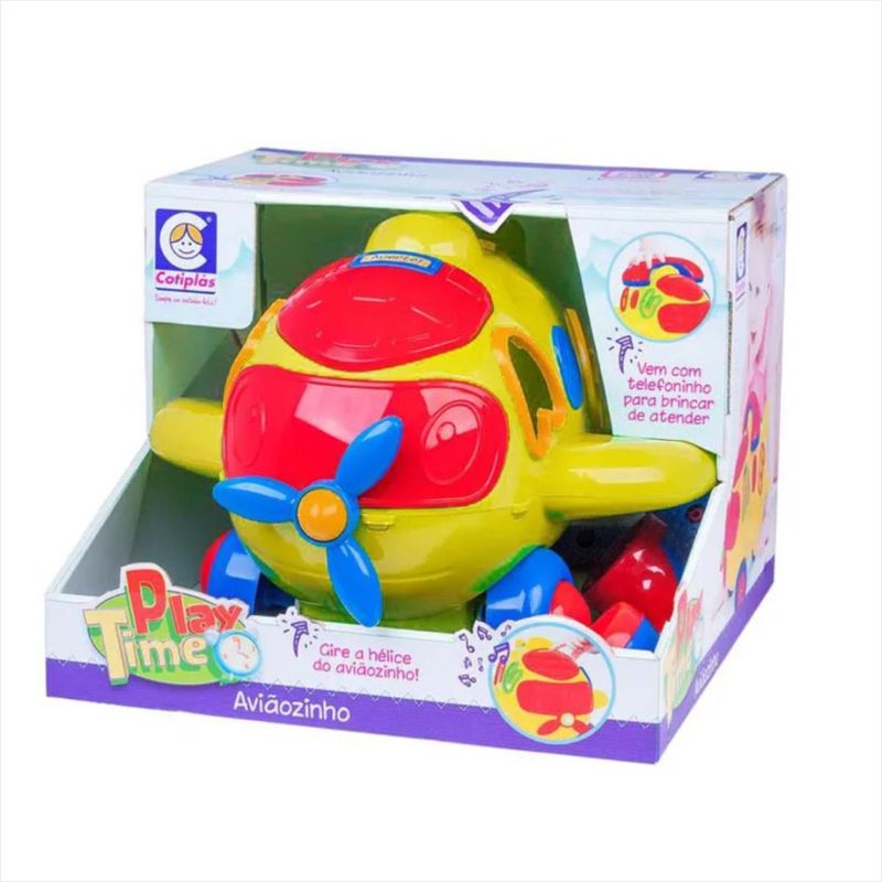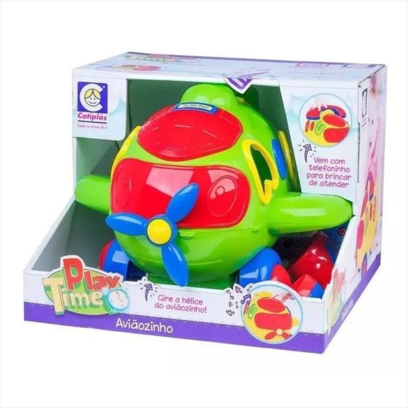 Brinquedo Play Time Aviãozinho - CotiplasDivirta-se e aprenda com este brinquedo educativo!O Play Time Aviãozinho é um divertido brinquedo educativo da marca Cotiplas, ideal para crianças a partir de 19 meses. O aviãozinho colorido é perfeito para estimular o desenvolvimento das crianças de forma lúdica e interativa.Diferenciais:Sistema de rodinhas livres e hélice que gira de verdade;Botão na parte superior do avião que emite sons e músicas educativas;Fabricado em plástico de alta qualidade para durabilidade e resistência.Mais sobre o Produto:O Play Time Aviãozinho Cotiplas proporciona às crianças momentos de diversão e aprendizado. Ao apertar o botão, o avião emite sons e músicas divertidas, estimulando a percepção auditiva e coordenação motora dos pequenos. Além disso, as cores vibrantes e o design atrativo tornam a brincadeira ainda mais envolvente.Dicas de Uso:Aproveite para explorar a criatividade da criança, incentivando-a a criar histórias e situações para o aviãozinho. Estimule a interação social e o compartilhamento, promovendo momentos de alegria e diversão em família. Lembre-se de sempre respeitar a faixa etária recomendada para garantir a segurança e o bom aproveitamento do brinquedo.Ficha Técnica:Marca: CotiplasIdade recomendada: A partir de 19 mesesMaterial: Plástico de alta qualidadeCores disponíveis: Verde e AmareloAgora é hora de decolar para grandes aventuras com o Play Time Aviãozinho - Cotiplas!As cores dos tecidos e produtos podem variar em relação às imagens da embalagem. Fotos meramente ilustrativas.