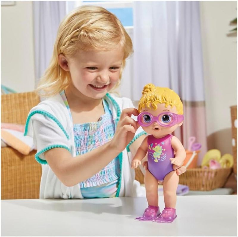 Aviso: Imagens meramente ilustrativas!! Esta boneca pra brincar na água é perfeita para meninos e meninas. Vem com óculos e 2 nadadeiras. A boneca articulada de 26 cm vem com uma linda roupa de banho com estampas de criaturas marinhas. É uma boneca divertida feita para brincar na água. Contém: 1 Boneca Baby Alive Nadadora Marca: Hasbro Ref: F8140 Idade recomendada: +3 anos Material: Plástico Medida Aproximada da Boneca: 26cm Altura