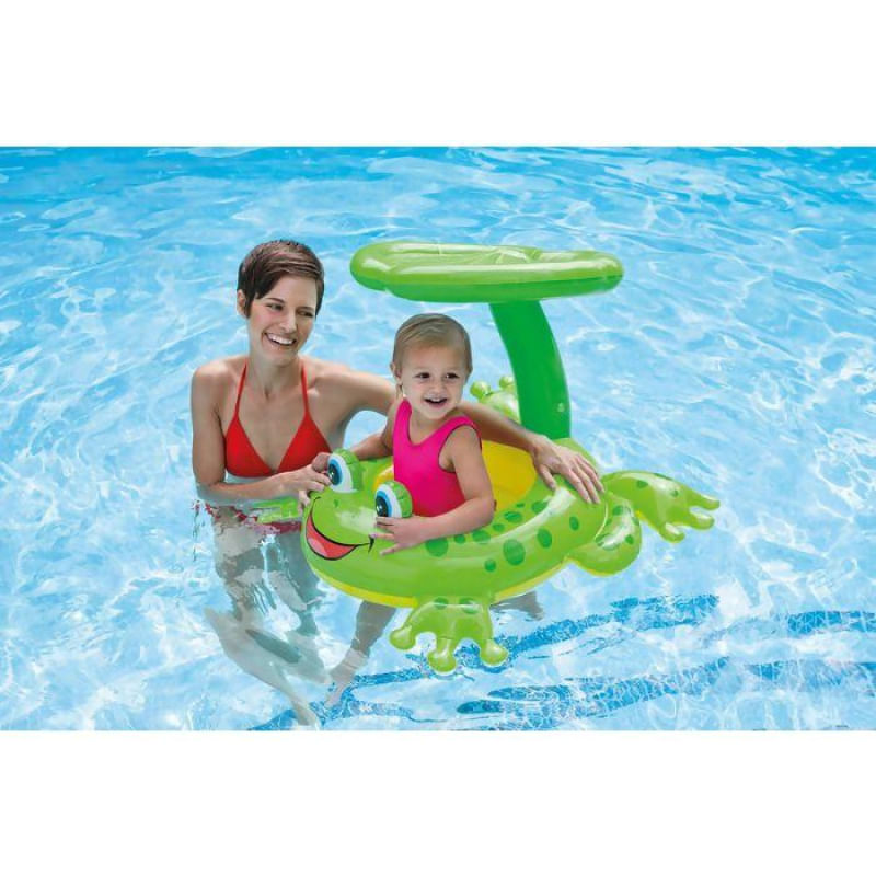 Os dias de verão ficarão mais divertidos com esse Bote Inflável de Sapinho da Intex. Ideal l para segurança dos pequenos em piscinas pois ela tem abertura para as pernas da criança encaixar por baixo da boia e tem cobertura para proteção solar. Suporta até 11kg.