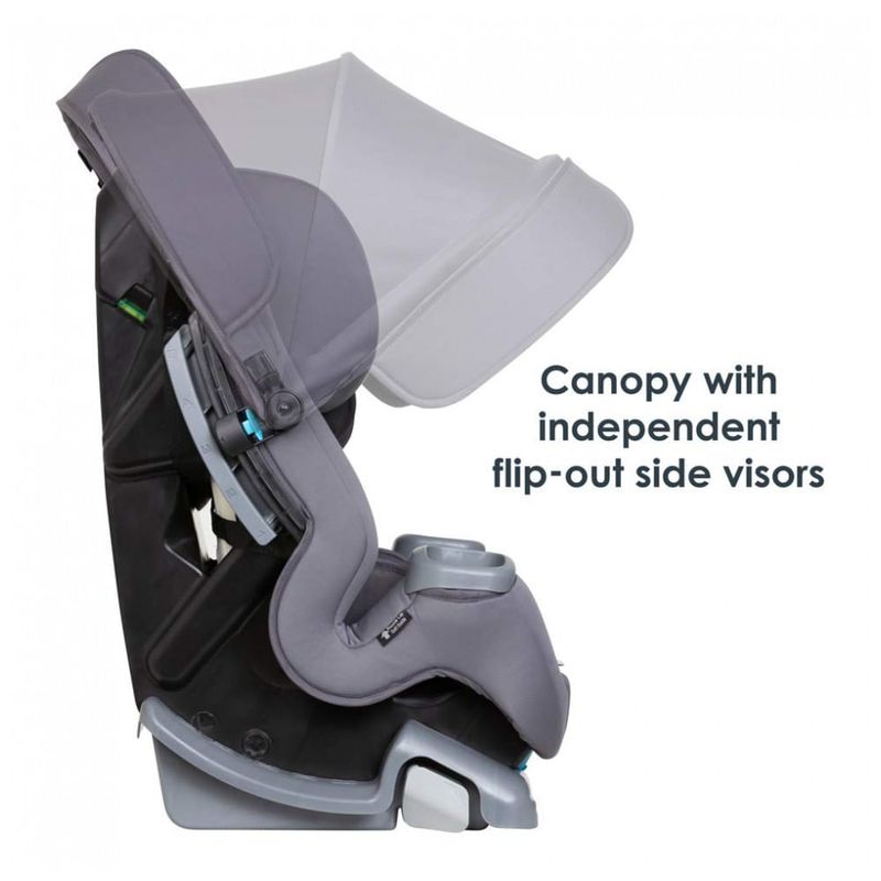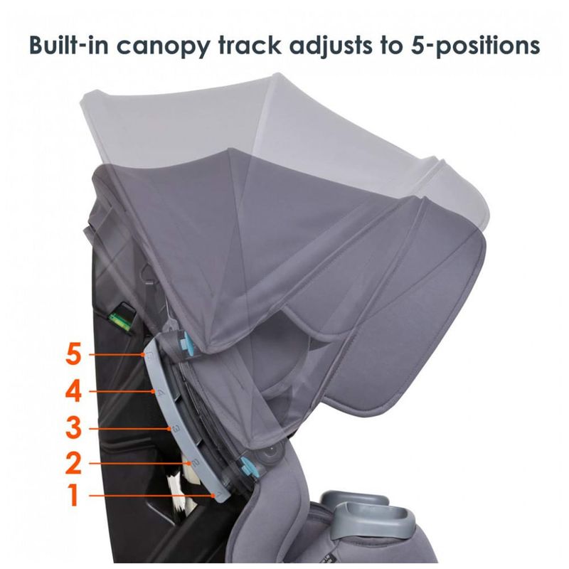 Altura e ângulo integrado para proteção UV no carro. As viseiras laterais retráteis fornecem proteção adicional de sombra para ambos os lados do assento do carro.