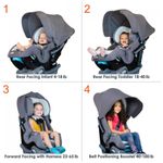 Sistema de assento 4 em 1 Construído para uso prolongado, incluindo 1 Modo infantil voltado para trás de 2 a 9 kg 2 Modo criança voltada para trás de 9 kg a 18 kg 3 Voltado para frente com modo de arnês de 9 kg a 29 kg 4 Reforço de posicionamento do cinto modo de 19 a 45 kg