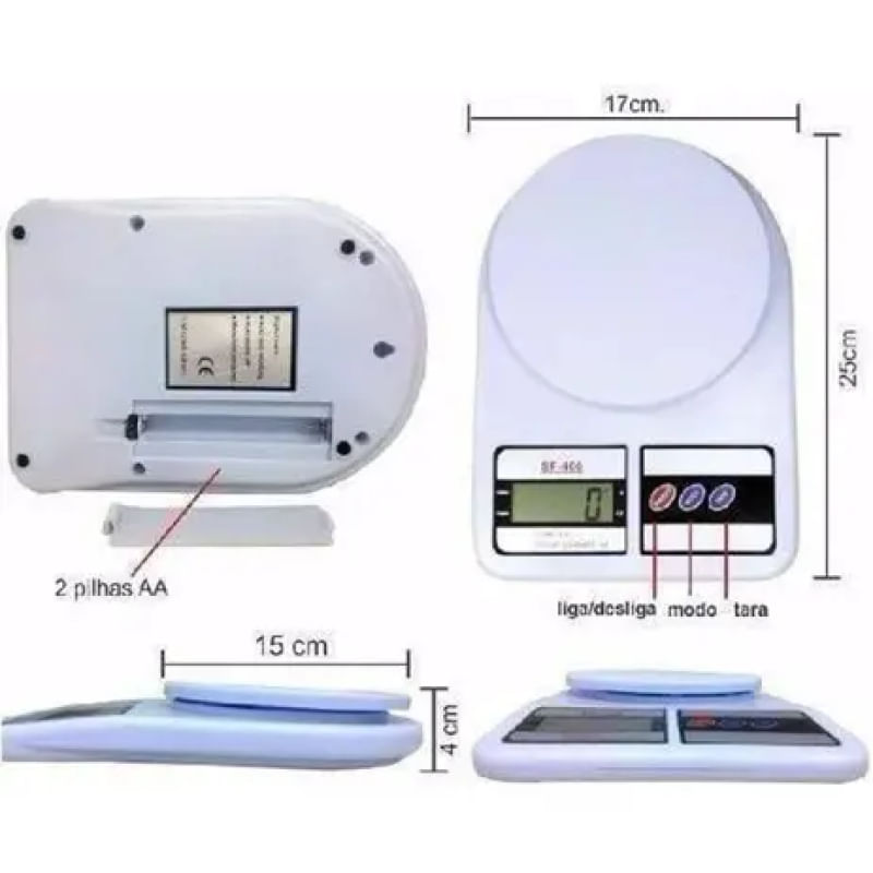 Balança Digital Sf-400 Alta Precisão Eletrônica 1g a 10 kg beleza e precisão para a pesagem de qualquer tipo de objeto como em receitas culinárias, farmacêutica e cosméticos, química, jóias e bijuterias, postagem postal etc. Características do produto: Balança Digital de Alta Precisão Eletrônica 1 Grama a 10 kg mod Sf-400 Capacidade de até 10 kg Graduação de 1 em 1 grama Equipado com um sistema de alta precisão de calibragem Sistema de tara Função para pesar em gramas ou onça (Oz) Visor de cristal líquido lcd Desliga automaticamente após o uso Alimentação: duas pilhas Aa (incluídas) Indica quando as pilhas precisam ser trocadas Peso da balança: 360 gramas Diâmetro do prato 14,5 cm Dimensões aproximadas da balança 16 largura cm x 3,5 cm altura x 24 cm comprimento . Itens Inclusos: 1 Balança Digital de Alta Precisão Eletrônica 1 Grama a 10 kg mod Sf-400 2 pilhas Aa.3