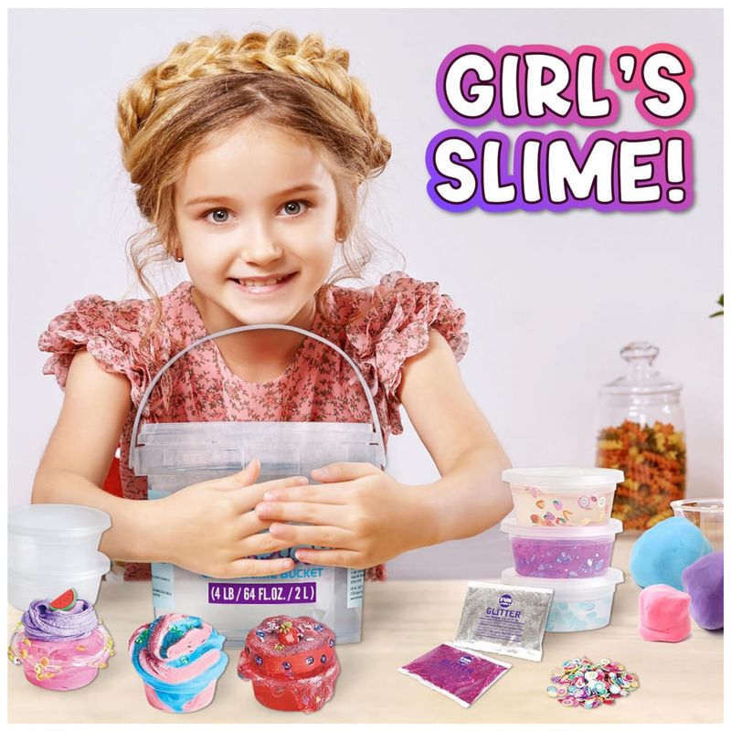 O balde contém uma grande quantidade de slime transparente pré-fabricado, permitindo criar vários estilos, como slime de areia, slime brilhante, slime de espuma, slime de neve em nuvem, slime crocante, slime de cristal e slime de manteiga.
