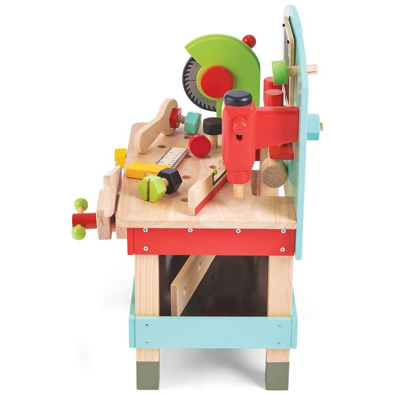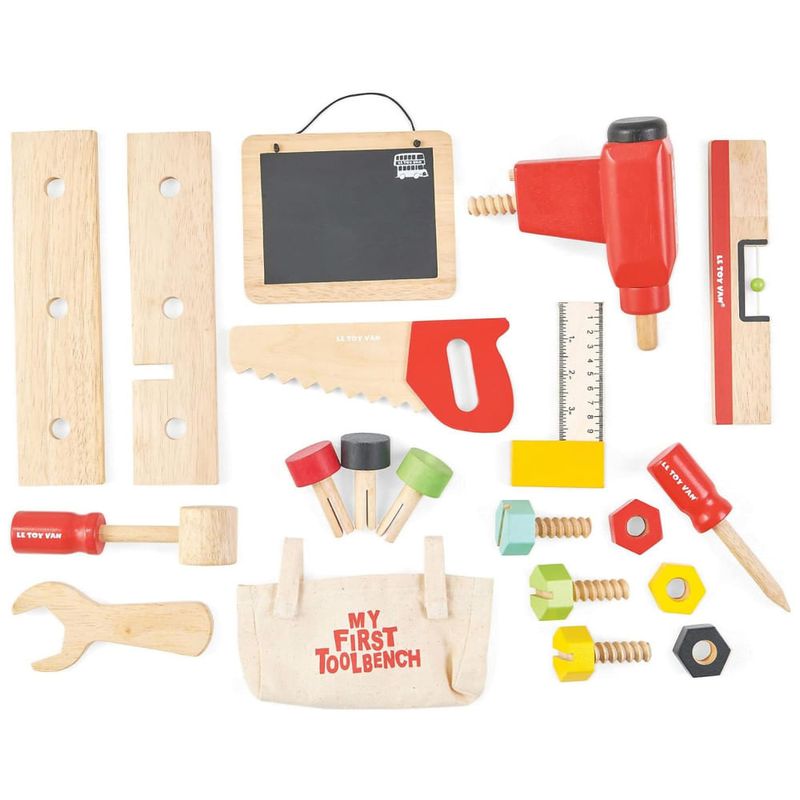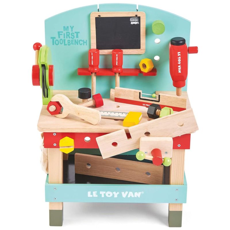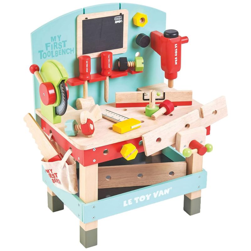 A Minha primeira bancada de ferramentas Le Toy Van é um brinquedo premiado que inclui uma furadeira e uma serra circular, além de várias outras ferramentas portáteis como martelo, chave de fenda, nível de bolha e régua de ângulo reto. Há também um quadro negro para anotar projetos. Este conjunto completo inclui uma pinça infantil, serra, martelo de madeira, chave de fenda, nível de bolha, régua em ângulo reto, chave inglesa e quadro negro. A bancada de brinquedo tem uma prateleira de armazenamento útil para guardar ferramentas na bancada e duas tábuas com porcas e parafusos. Este banco de ferramentas e mesa de atividades para crianças promove brincadeiras de faz de conta, permitindo que as crianças sejam criativas, aprimorem suas habilidades motoras e aprendam enquanto se divertem. É recomendado para crianças com mais de 3 anos de idade. O conjunto de banco de ferramentas de madeira My First Tool Bench é um excelente acompanhamento para outros brinquedos de madeira da coleção de construção de carros Le Toy Vans, incluindo transportador de carros de corrida, caixa de ferramentas para crianças e conjunto de carros de metrô retrô. O banco de madeira é decorado com tintas atóxicas e testado de acordo com os mais altos padrões de segurança. Usando materiais naturais, incluindo madeira de seringueira lisa de qualidade legal e renovável e uma variedade de técnicas, desde serigrafia manual até tingimento com água, esses brinquedos detalhados com acabamento manual são únicos e amados por pequenas mãos. Este conjunto de banco de trabalho infantil vem com armazenamento de brinquedos embutido para áreas de brincadeira organizadas.