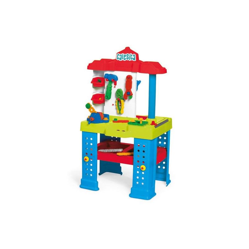 Bancada de Trabalho Tateti Este produto faz parte da linha de brinquedos educativos da Tateti e contém ferramentas para criar, montar e desmontar que possui duas frentes de trabalho coloridas e equipadas com muitas ferramentas e acessórios! Estimula a criatividade, o raciocínio na resolução de problemas e a imaginação das crianças! O kit é composto por um alicate, chave de fenda, chave de boca, chave inglesa, morsa, serrote e furadeira que fazem barulho igual aos de verdade, martelo, parafusos e porcas.
