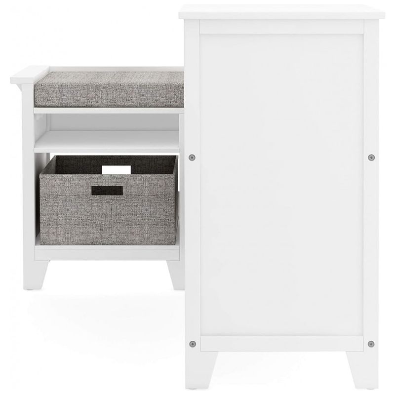 O móvel é fabricado em madeira de bétula e madeira engenheirada, com estrutura e molduras em bétula e painéis em material composto de acabamento branco Linen White de fácil limpeza. O assento possui almofada espessa revestida em tecido e cantos arredondados, proporcionando conforto durante a leitura e uso em momentos de descanso.?