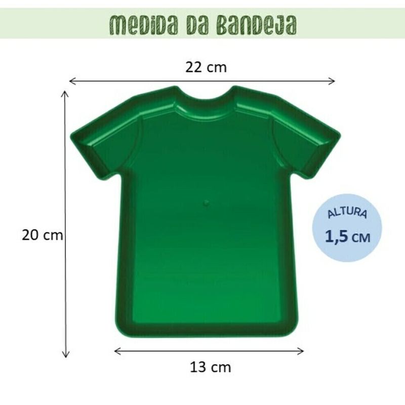 Dê um gol de placa na decoração da sua festa com a Bandeja Camiseta! Ideal para festas tema futebol, ela vai deixar seu evento com aquele toque esportivo decorativo cheio de estilo. Perfeita para doces e petiscos, essa bandeja em forma de camiseta é leve, prática e vai fazer sua mesa virar o campeão da diversão. Garanta já e marque esse golaço na sua decoração!