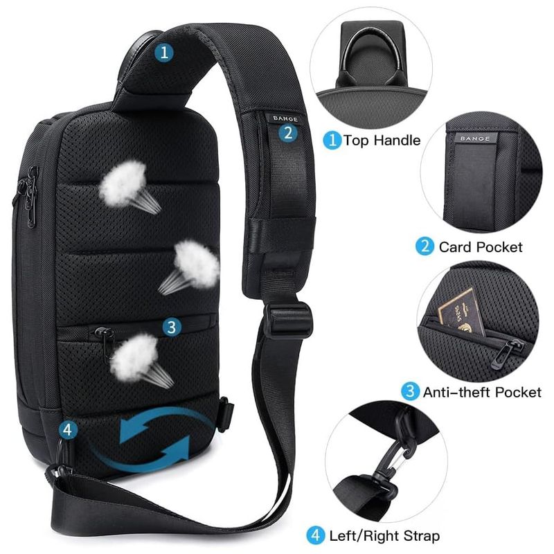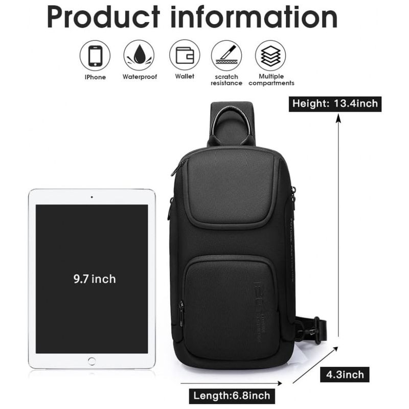 BOLSA DE PEITO COM MÚLTIPLOS BOLSOS DE ZENAMENTO O bolso lateral frontal é conveniente para vários itens pequenos. Compartimento grande com bolsos internos é ótimo para ipad de 7,9 polegadas, câmera, banco de potência, garrafa de água, notebook, canetas. Bolso exclusivo para cartões na alça de ombro torna esta bolsa de peito pensativa
