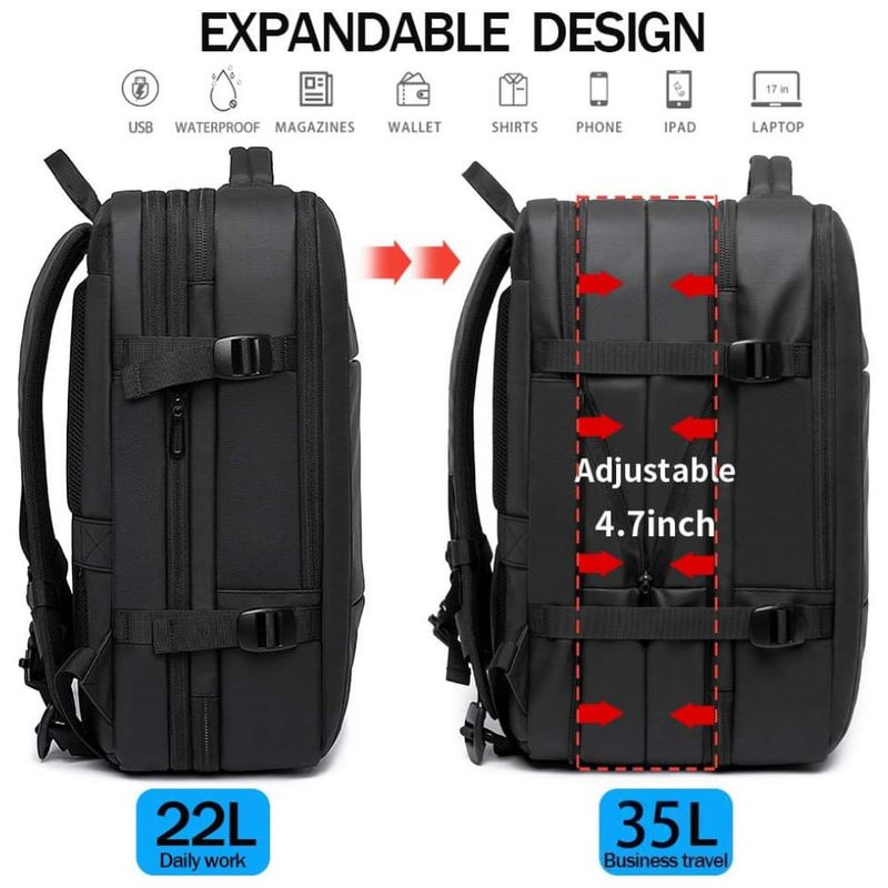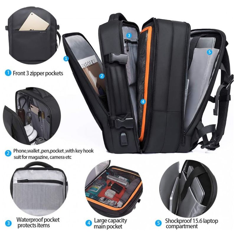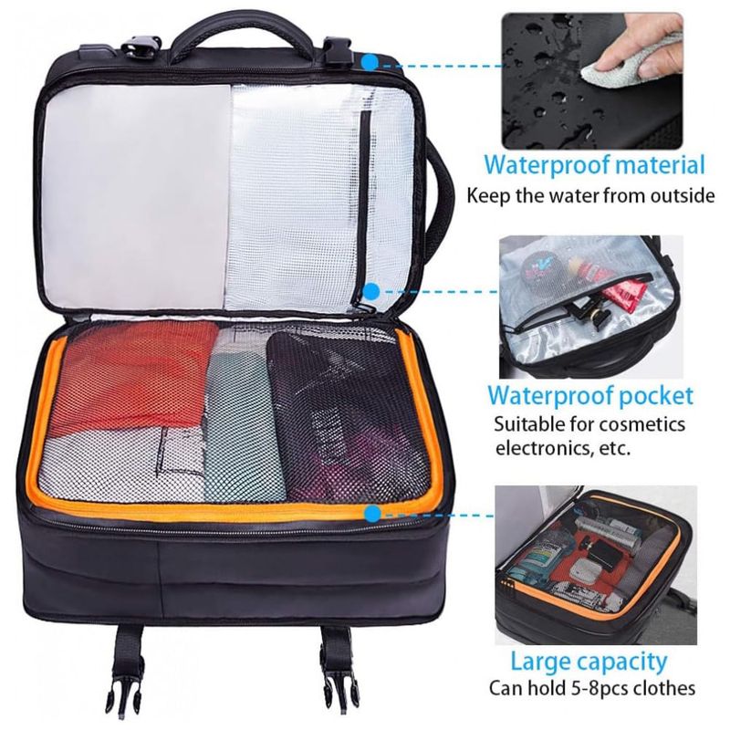 DURÁVEL E MULTIUSO Articulação e alçadas foram desenhadas para costura de linha em forma mais resistente. As duas alças grossas são confortáveis para carregar por muito tempo. Todos os zíperes são duráveis, à prova de explosão e. Diferentes divisões com tamanhos e recursos diferentes que permitem que você zene itens de maneira e organizados. Um ótimo companheiro para a escola, deslocamento, viagem de negócios, caminhadas, viagens, camping outras ao ar livre