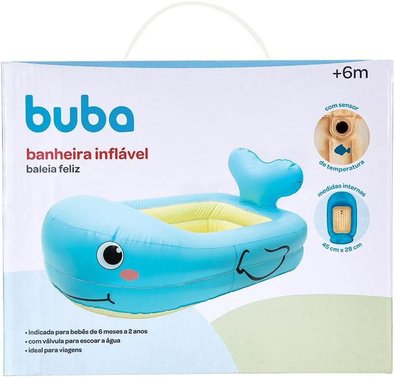 A Banheira inflável Baleia feliz da Buba é indicada para crianças de 6 meses a 2 anos de idade.