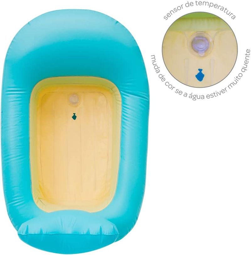 Fácil de esvaziar e dobrar, é perfeita para levar em viagens. Possui um sensor de temperatura que muda de cor quando a temperatura da água está muito alta.