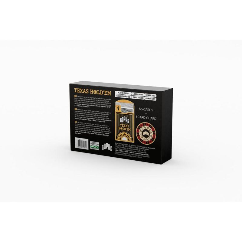 Ficha Técnica:Marca: Copag;Nome do produto: Baralho Texas Hold'em com Card Guard;Idade recomendada: A partir de 7 anos;