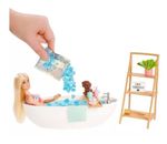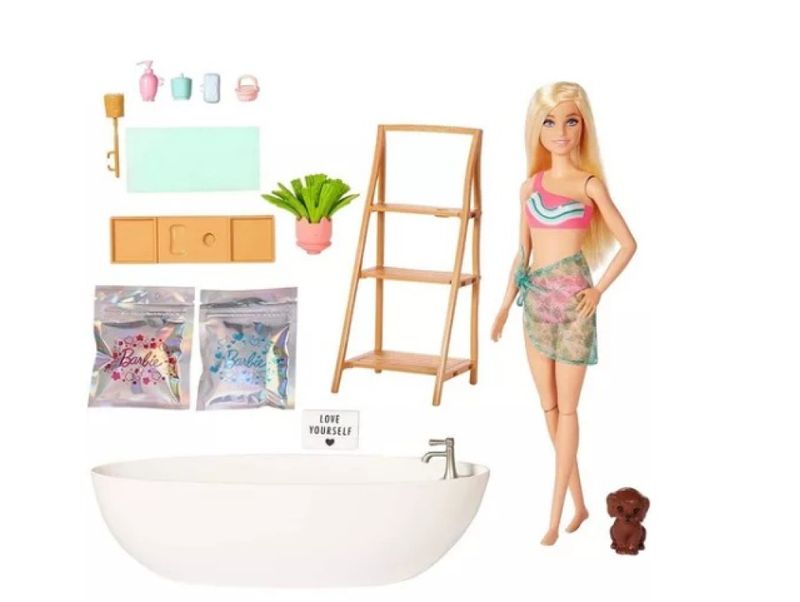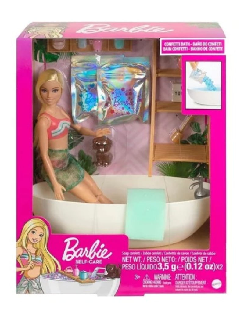 A boneca Barbie sabe que o autocuidado a ajuda a se sentir feliz e saudável! Este conjunto de boneca e banheira Barbie Confetti é a maneira favorita da boneca Barbie de recarregar. Dois saquinhos de sabão de confete solúvel mudam a água do banho da mesma cor, acrescentando um pouco de magia à hora de brincar! Além disso, itens e acessórios temáticos definem o cenário para contar histórias.