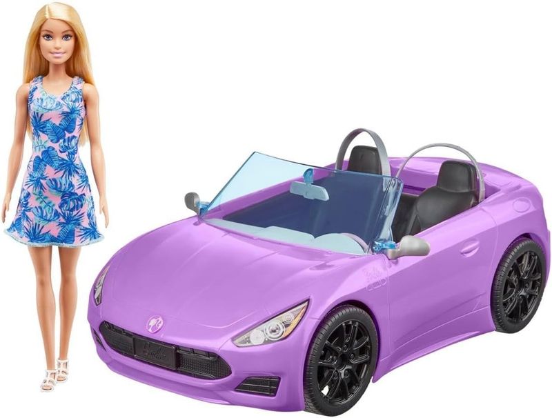 As crianças podem pegar a estrada para se divertir contando histórias com a boneca Barbie® e seu veículo conversível roxo! Esse conjunto de boneca e veículo apresenta um carro elegante com capota aberta, formato esportivo, assento para duas pessoas e detalhes realistas, como grade e rodas em preto fosco, cintos de segurança e detalhes prateados.