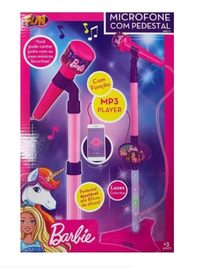1, 2, 3 testando! Chegou o divertido Barbie Microfone com pedestal – Dreamtopia, da Fun Divirta-se! Plugue o celular e cante as músicas junto com seu artista favorito ou arrase com versões únicas e autorais. Vem com pedestal e base que piscam luzes completando a performance musical.