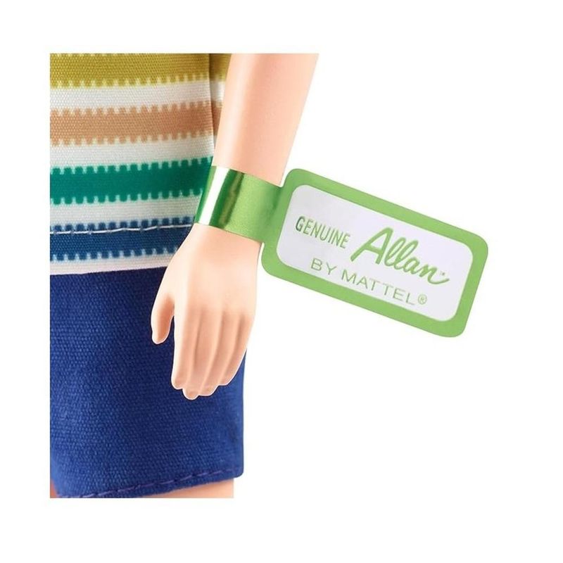Aviso: Imagens meramente ilustrativas!! Comemore o 60º aniversário de Allan, amigo do Ken, com esta boneca colecionável de reprodução de Aniversário. Allan usa uma jaqueta listrada colorida, calção de banho azul marinho e sandálias combinando para um clima retrô. Apresenta cabelo ruivo esculpido e uma pulseira vintage, assim como o boneco Allan original de 1964. Contém: 1 Boneco Allan Modelo Vintage 1964 Idade Recomendada: 3+ Anos Altura do Boneco: 30cm Ref: HRM87 Franquia: Barbie Modelo: 60º Aniverssário do Boneco Allan Marca: Mattel