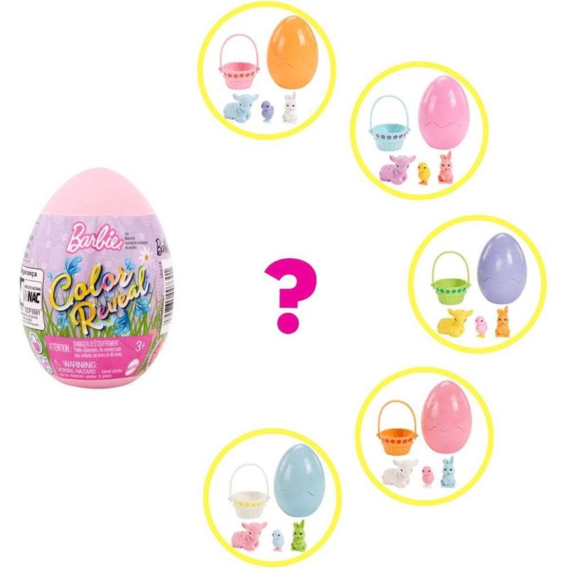 Com 6 surpresas em 1 ovo de Páscoa de cor pastel, os amigos animais Barbie Color Reveal tornam a festa um prazer primaveril!