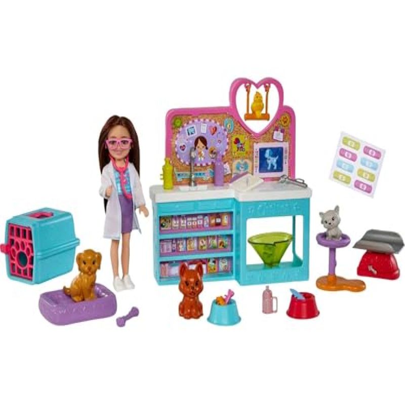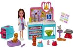 A boneca morena Chelsea pode brincar de veterinária de animais de estimação assim como sua irmã mais velha Barbie® com o playset Barbie® Chelsea® Pet Vet. Vestida com um lindo casaco e vestido branco, a boneca Chelsea® está pronta para começar o dia. Ela pode examinar seus pacientes na mesa do veterinário com seu estetoscópio e verificar seu peso na balança móvel. Peças adicionais de contar histórias para se divertir incluem 4 animais de estimação (2 cachorrinhos, 1 gatinho e 1 pássaro com um balanço que se move). Há também 18 peças adicionais, como uma cama para animais de estimação, torre para gatos, instrumentos médicos, prancheta, um cone, frasco de bomba, frasco de remédio, caixa para animais de estimação, pratos de alimentação, guloseimas para cães, lençol de curativo e muito mais. As crianças vão adorar as infinitas possibilidades de expressão criativa e diversão de contar histórias. Boneca não pode ficar sozinha. Cores e decorações podem variar.