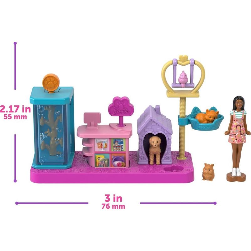 -Entrando no mundo da boneca Barbie com Mini Barbie Land - um lugar para imaginar grande e Sonhar em Mini! -Construído com uma fofura minúscula e uma grande surpresa, este conjunto inclui uma Mini Casa dos Sonhos, três conjuntos e seis minibonecas Barbie prontas para brincar ou exibir. -A Casa dos Sonhos em pequena escala vem com uma caixa divertida que revela uma das minibonecas Barbie, um animal de estimação aleatório e um acessório para o animal de estimação. -O elevador, o escorregador e a piscina funcionam exatamente como nas versões das bonecas Fashion! -Quando chega a hora da mini aventura, as crianças podem criar outras histórias com a Pet Boutique, o Hair Salon e o Super Market. Cada conjunto vem com uma boneca de 3,8 cm e recursos divertidos. -As minibonecas se dobram na cintura e ficam em uma base em forma de coração que se encaixa em diferentes áreas da casa. As fãs de 4 anos ou mais vão adorar a coleção instantânea Mini Barbie Land para construir seu próprio mini mundo! As cores e as decorações podem variar. Características: Marca - Mattel Idade recomendada: A partir de 3 Anos Cód. JGL31