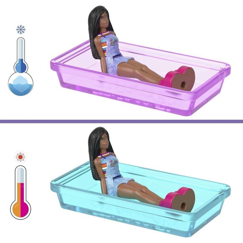 Mais sobre o Produto:Portas funcionais que trazem interatividade ao playset.Piscina com transformação de mudança de cor para enriquecer a experiência de brincar.Boneca Barbie dobrável na cintura para sentar e dirigir o veículo.