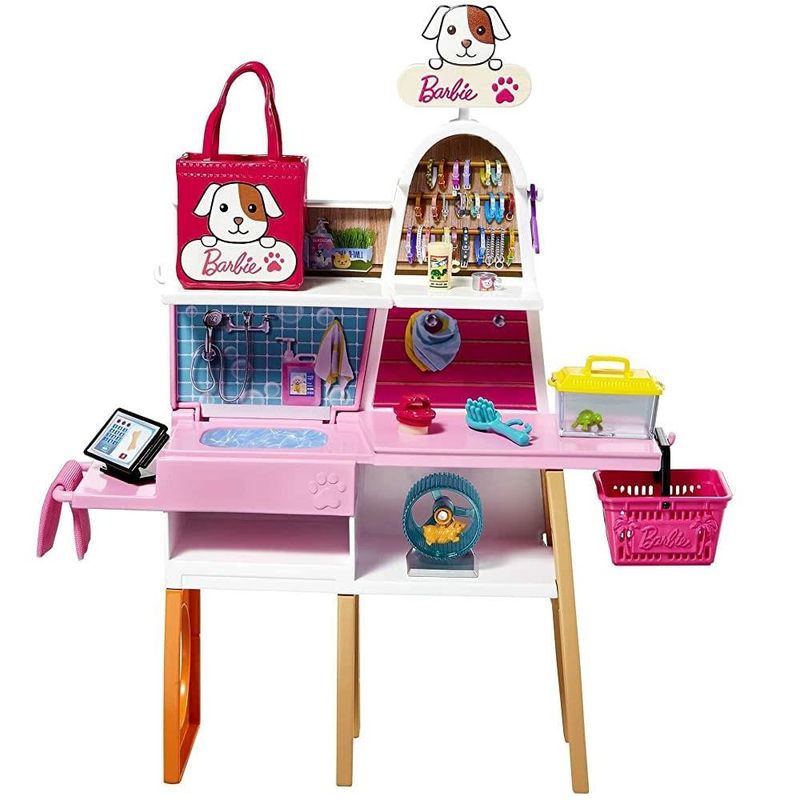 Barbie Playset Estação Pet Shop - MattelO Barbie Playset Estação Pet Shop da Mattel é o cenário perfeito para quem deseja cuidar e mimar os bichinhos de estimação da Barbie. Com uma estação de cuidados, balcão de pagamento, estante com prateleiras e mais de 20 peças temáticas, este brinquedo é ideal para inspirar narrativas repletas de amizade e aventuras. Idade recomendada: A partir de 3 anos. Selo Inmetro: 00128-04A.