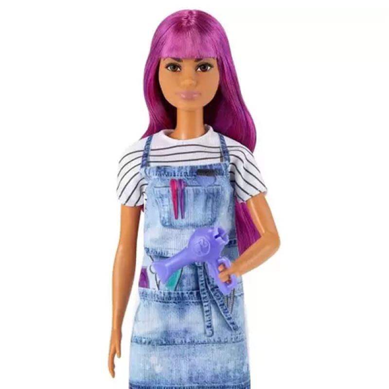 Barbie Profissões Cabeleireira - Mattel Informações do Produto: Escolha a Barbie que mais combina com o que você quer ser quando crescer! Afinal, você pode ser tudo o que quiser! São diversas bonecas (vendidas separadamente), cada uma representando uma profissão diferente, para você brincar e colecionar! Cada Barbie veste uma produção inspirada em sua carreira, com acessórios que dão mais realismo à história. Diferentes corpos, tons de pele, cores de olhos e penteados aumentam as possibilidades e a inspiração. O conjunto inclui boneca com sua roupa e acessórios, além de peças temáticas profissionais. Itens Inclusos: 1 Barbie Profissões. Recomendado: Para crianças maiores de 3 anos de idade. Alimentação: Não requer. Material composição: Plástico. Certificação Segurança:CEBRI/INNAC-00128-01A NM 300/2002. Ocp 0061. Garantia do Fabricante: 03 meses contra defeitos de fabricação. Aviso: Imagens meramente ilustrativas. As cores podem variar entre as imagens mostradas acima e o produto.