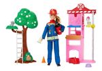 A boneca Barbie Bombeira permite que as crianças revelem seus heróis interiores com um Conjunto de Corpo de Bombeiros e mais de 10 peças para salvar o dia. As crianças podem se divertir resgatando um gatinho em uma árvore ou combatendo um incêndio com peças interativas, como uma peça de fogo que muda de cor, uma árvore com buracos para pinos e um brinquedo de esguicho de extintor de incêndio ? a água fria apaga o fogo! Vestida com seu uniforme e carregando um megafone, a boneca Barbie Bombeira está pronta para sair da estação com seu dálmata de estimação ao seu lado ? o cachorrinho pode descer pelo mastro de incêndio e pegar uma carona no mini caminhão de bombeiros durante a brincadeira. As crianças a partir de 3 anos vão adorar as infinitas possibilidades de expressão heroica e de contar histórias! A boneca não pode ficar em pé sozinha. As cores e as decorações podem variar. * A boneca e o conjunto da Barbie Bombeira inspiram as crianças a explorarem seus sonhos com: um quartel de bombeiros, uma boneca, um filhote de cachorro e mais de 10 peças para se divertirem interpretando papéis! * O quartel de bombeiros ilumina a imaginação com um mastro de fogo giratório, que permite ao fiel filhote de dálmata ser transportado de sua cama de estimação para o quartel e, depois, pegar uma carona no mini caminhão de bombeiros! * As jovens aventureiras podem simular o combate a incêndios com a peça de fogo que muda de cor e se conecta aos orifícios da árvore. Use água morna para ativar o efeito de ?fogo? e água fria para apagá-lo. É necessária a supervisão dos Pais. * Peças que estimulam a imaginação, como um brinquedo de esguicho de extintor de incêndio, uma escada, um mapa de incêndio, cones e muito mais, que envolvem as crianças na brincadeira! * A boneca Barbie usa um uniforme de bombeiro removível, com botas e chapéu de bombeiro, para um dia de trabalho!