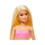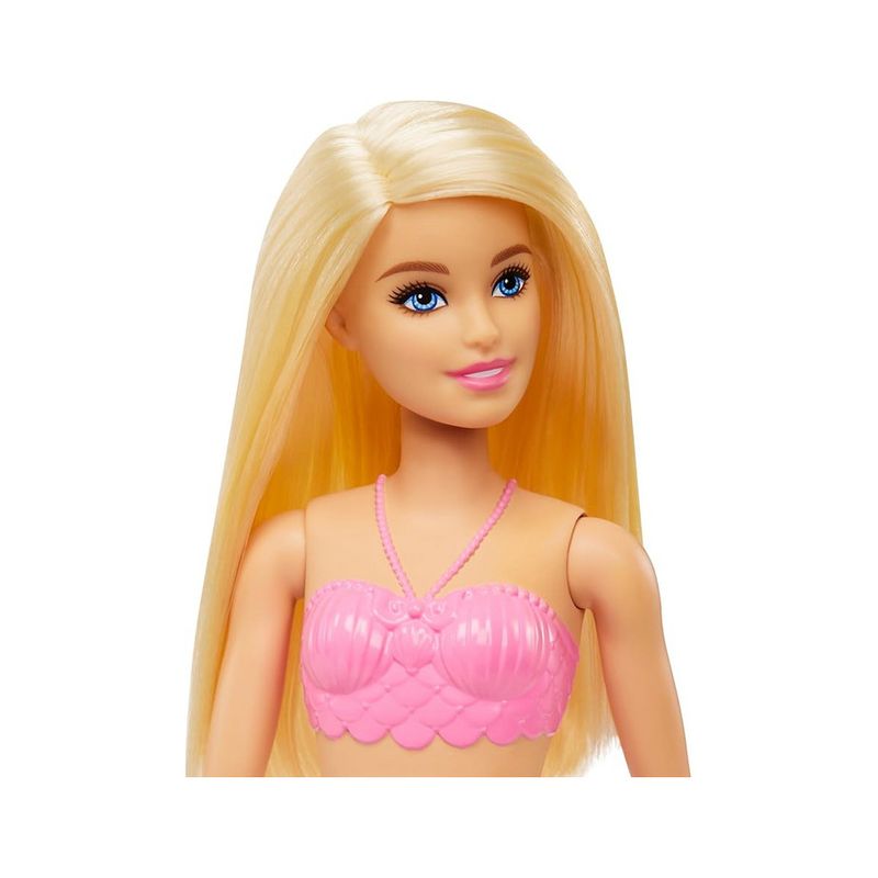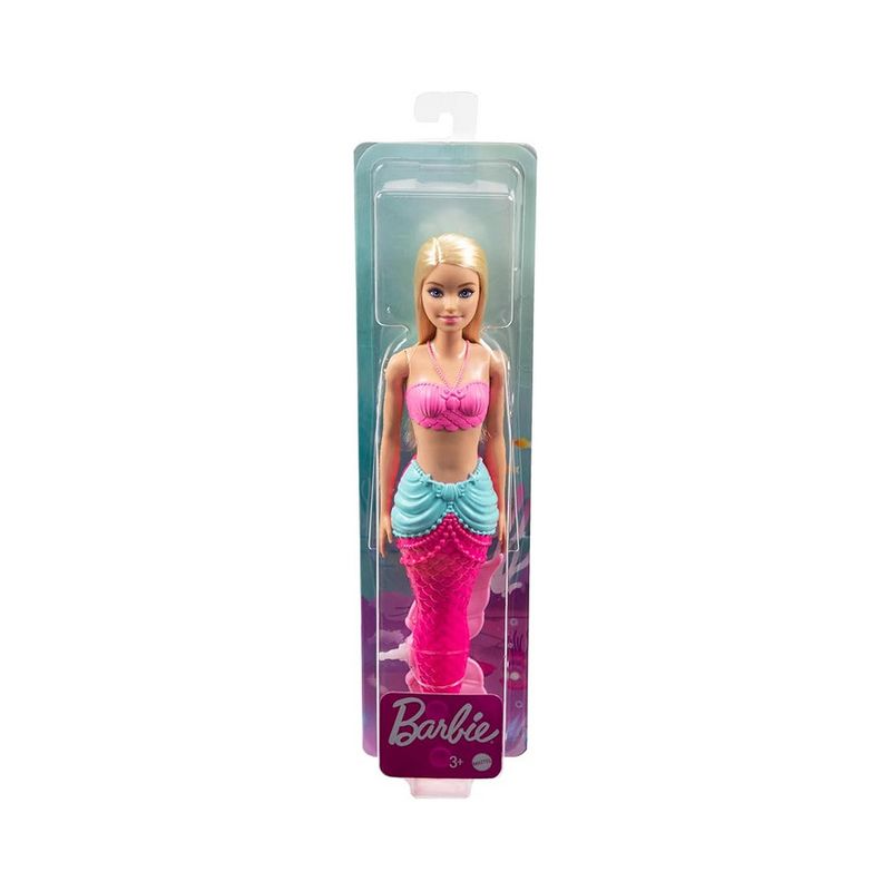 BARBIE SEREIA LOIRA - MATTELA Barbie Sereia Loira encanta com seus longos cabelos loiros e uma linda cauda que brilha nas brincadeiras. Ideal para imaginar aventuras mágicas no fundo do mar, ela transforma qualquer momento em pura fantasia e diversão.