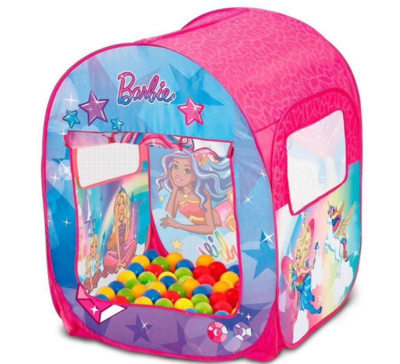 Com a Barraca Infantil da Barbie a diversão é garantida! As pequenas vão adorar brincar de acampar com a Barraca Infantil Barbie Mundo dos Sonhos da Fun! Ajude-as a inventar histórias para deixar a brincadeira ainda mais divertida! Aventura, ação, magia... Solte a imaginação para criar momentos incríveis com a Barbie! Super prática, a barraca é fácil de abrir e fechar, perfeita para levar para qualquer lugar!
