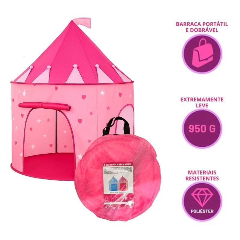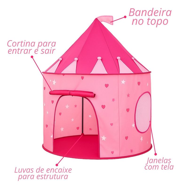 Benefícios do Produto: Com design em forma de castelo e tema encantador, esta barraca estimula a criatividade e o desenvolvimento social das crianças. Certificada pelo INMETRO, oferece segurança e qualidade comprovadas. Com uma avaliação de 4,7/5 e mais de mil vendas realizadas, é um produto confiável e bem aceito no mercado.