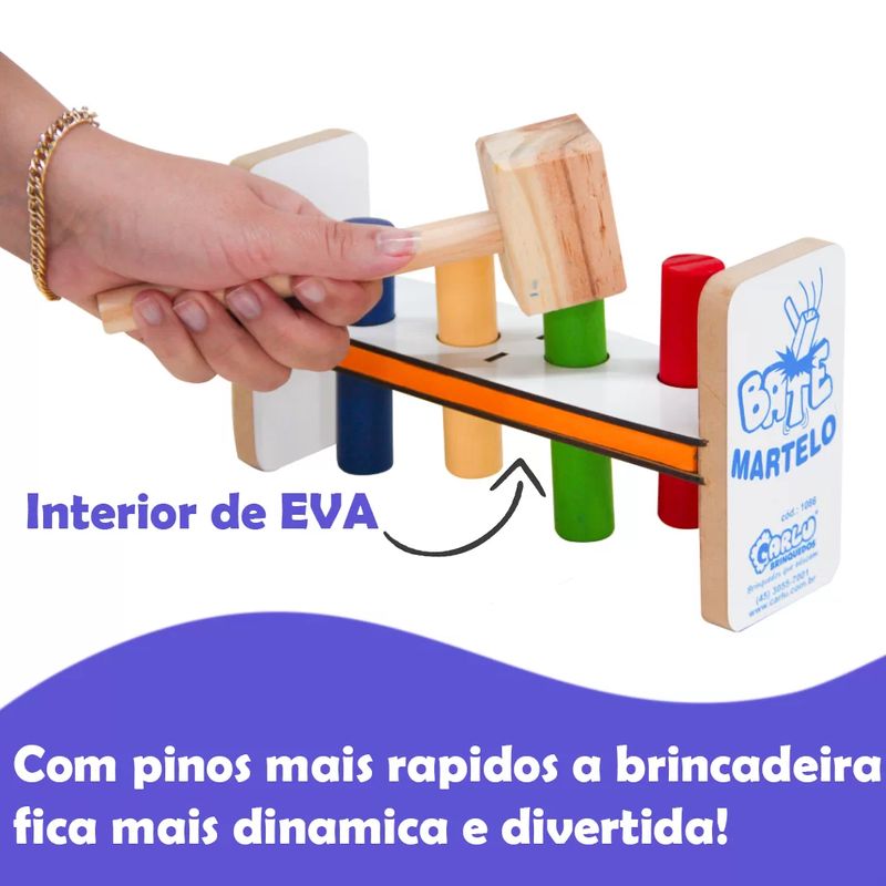 BATE MARTELO BRINQUEDO EDUCATIVO MADEIRA CARLU