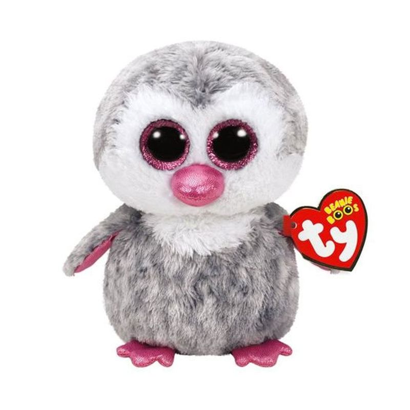 o Beanie Boos Olive Pinguim Cinza Pelúcia, É Leve e Macio, Super Gostoso de Segurar e Abraçar.