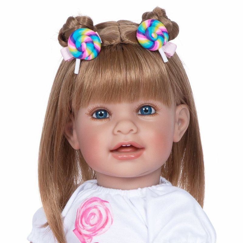Adora Doll é uma linha de lindas Bonecas americanas para brincar e colecionar, confeccionadas em material de vinil em seu rostinho encantador, em seus bracinhos, perninhas e pés, realçando seus incríveis detalhes! Seu corpo é feito em tecido de toque macio. Além disso, possui cheirinho de bebê suave, tamanho e peso semelhantes ao de um bebê de verdade!