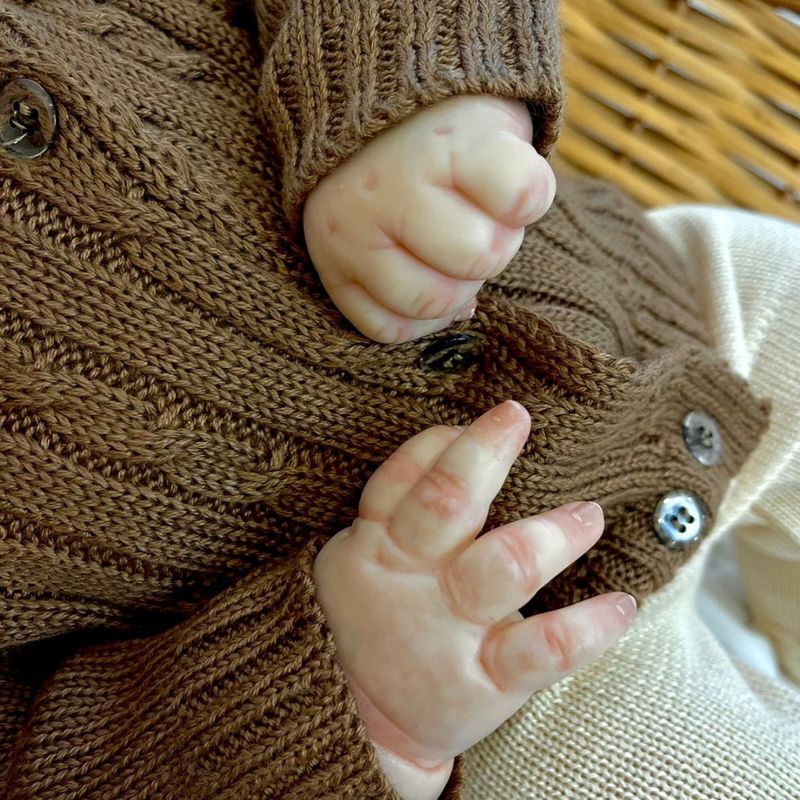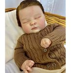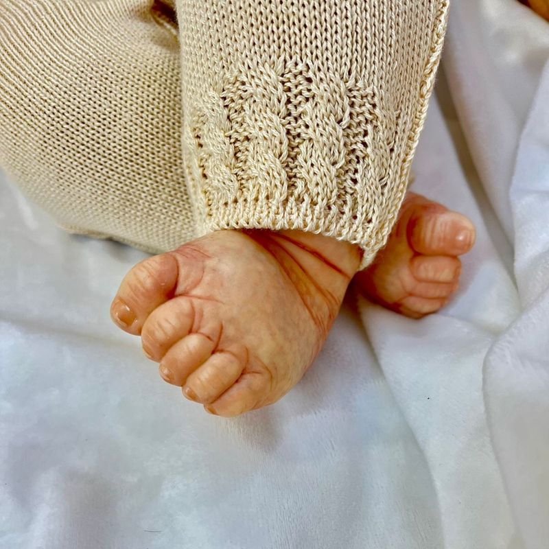 - Olhos fechados, transmitindo a delicadeza e tranquilidade do sono de um bebê real.