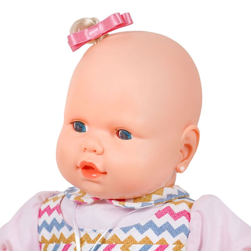 A tradicional marca Bebezinho, da linha Bebezinhos, é referência de qualidade e apresenta diversos detalhes.O primeiro é o seu cheirinho delicioso e gostoso de talco, igual ao de um bebê que acabou de sair do banho. Além disso, suas roupinhas são de alta costura e de estampas exclusivas. Ela possui uma linda pulseirinha de menininha, que é o verdadeiro atestado de mamãe e filhinha. E claro, o produto acompanha uma chupeta para quando o bebê for dormir. Este é um produto completo e seguro sendo recomendado para crianças a partir dos 3 anos de idade.