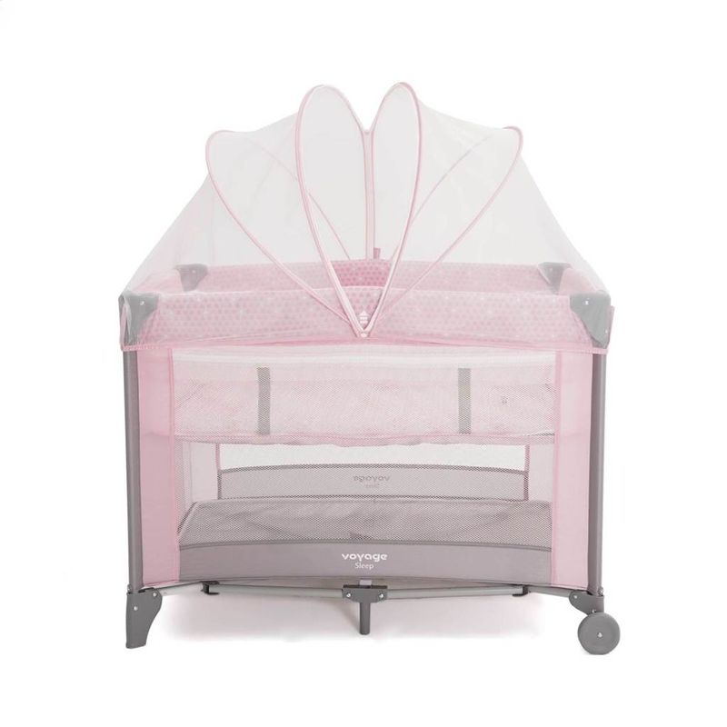 Tem 2 alturas de uso, mosquiteiro, e amplo bolso lateral. Colchão com zíper e trava.Tem 2 rodas que facilitam movimentá-lo e bolsa que permite transportá-lo. O berço Sleep acompanha um amplo mosquiteiro com zíper, que irá proteger o bebê de qualquer mosquito que possa picá-lo ou incomodá-lo. Por sua dimensão ampla, pode ser utilizado para o bebê dormir ou até mesmo para ele brincar. Com as duas rodinhas localizadas na parte frontal do berço, você poderá movê-lo com maior facilidade sem a necessidade de arrastá-lo. Possui colchão seguro, com zíper e trava para não movimentar-se enquanto utilizado. O bolso lateral é ideal para guardar os pertences do bebê: além de ser amplo, suporta até 2 kg. Sua montagem é bem simples e pode ser facilmente desmontado e carregado na bolsa de transporte para qualquer lugar. A segunda altura suporta crianças até 10 kg e só deve ser utilizada enquanto a criança não conseguir sentar-se sozinha ou apoiar-se sobre as mãos e os joelhos. Limpe o tecido e parte plásticas utilizando um pano úmido e sabão neutro quando necessário. Aprovado pelo INMETRO conforme a norma ABNT NBR 15.860 para crianças do nascimento aos 18kg.