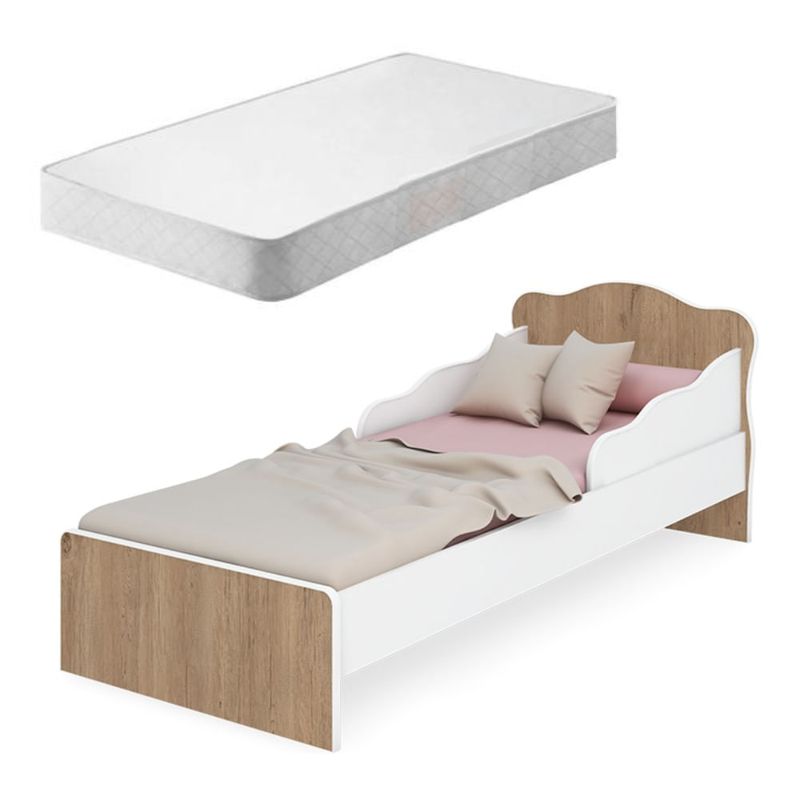 Cama Infantil Villae Carvalho Rústico Branco com Colchão
