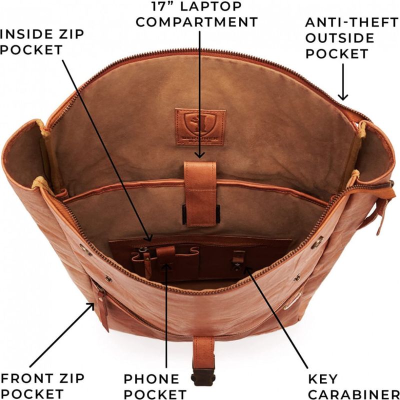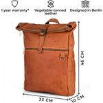 COURO VEGETAL TANIFICADO. A elegante mochila Utrecht é feita à mão com couro vegetal de alta qualidade. O curtimento vegetal é um antigo processo natural de curtimento que usa taninos e óleos vegetais sem quaisquer produtos químicos prejudiciais. Devido a este processo de produção, cada mochila é impermeável e possui uma cor única e acabamento vintage. Em vez de secar ou se desgastar, o couro curtido com vegetais amolece e cria uma bela pátina com o tempo
