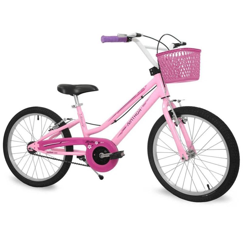 A Bicicleta Aro 20 Bella com Pezinho da Nathor conta com movimento central descolado, um diferencial que ajuda muito na hora do pedal. Proporcionando um conforto maior. Seus freios V-Brake e maçaneta em alumínio garante uma ótima rigidez, fazendo com que sua frenagem seja muito mais eficiente e segura para não sofrer deformação. Conta com pezinho para descanso e um exclusivo protetor de corrente, que levam muito mais segurança e conforto. Seus pneus possuem câmera e aros em alumínio e seu quadro é em aço carbono.