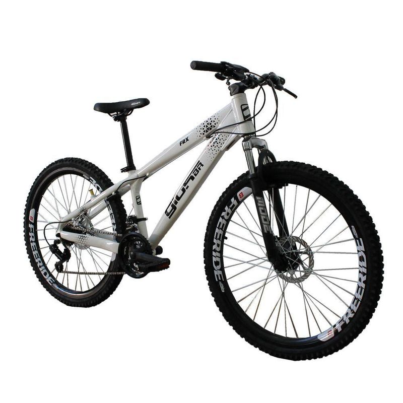 Bicicleta Aro 26 FRX Freeride 21 Velocidades Branco GiosA Bicicleta Gios FRX foi projetada para quem quer uma bike de personalidade e estilo inigualável. Ela oferece ao ciclista quadro diferenciado e design arrojado e exclusivo. Com qualidade, ela vem equipada de com 21 velocidades, permitindo ao ciclista a escolha da marcha ideal de acordo com o local. O design moderno pode ser observado no quadro da bike e os pneus são confeccionados em MTB com aro 26, garantindo segurança total a cada manobra em qualquer tipo de terreno.Observações: