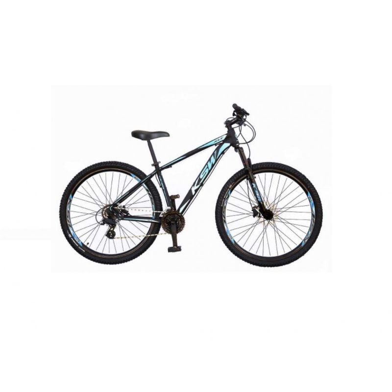 Bicicleta Aro 29 Ksw Xlt 24v K7 Câmbios Shimano Freio Hidráulico Garfo Com Trava - Preto/prata/azul - Tam. 17