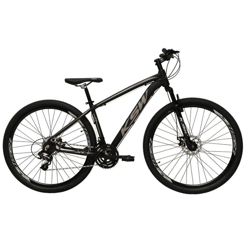 Bicicleta Aro 29 Ksw Xlt 24v K7 Câmbios Shimano Freio Hidráulico Garfo Com Trava - Preto/prata - Tam. 17