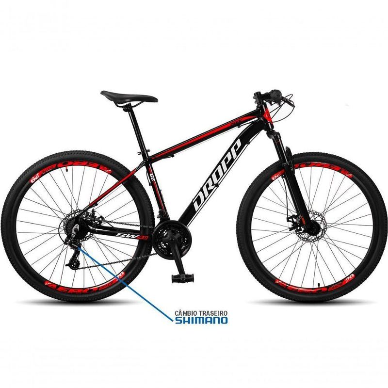 Bicicleta Aro 29 Dropp Sw 24 Vel Câmbio Shimano Quadro Alumínio Mtb Preto + Vermelho 17Tamanho indicado de Quadros: