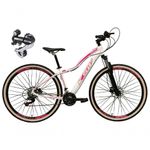 Bicicleta Aro 29 Ksw Mwza 24v Câmbio Shimano Acera K7 Garfo Trava Freio A Disco - Branco/rosa Tam.15