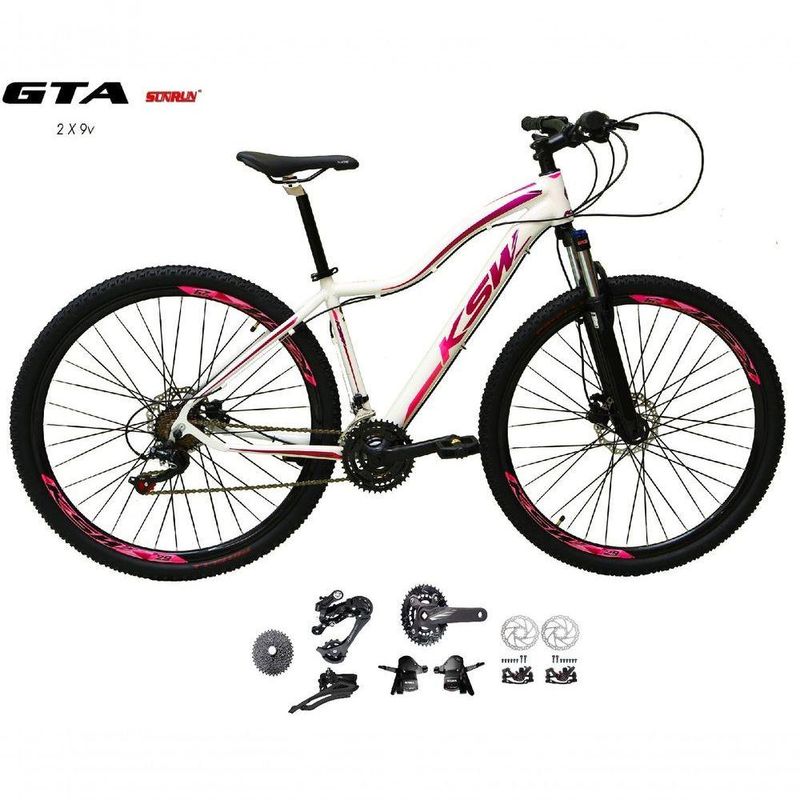 Bicicleta Aro 29 Ksw Mwza Feminina Kit 2x9 Sunrun Disco K7 11/36 Pedivela 24/38d Com Trava - Branco/pink/violeta Tam.15