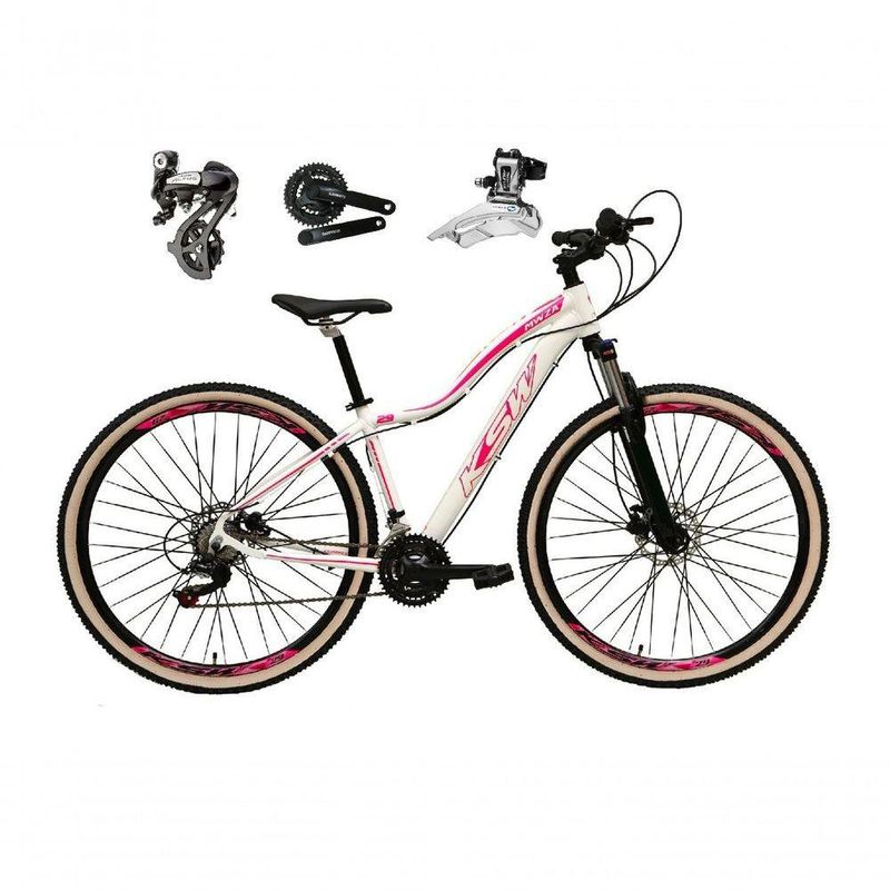 Bicicleta Aro 29 Ksw Mwza Shimano Altus 24v Frio Hidráulico Garfo Trava Pneu Bege - Branco/rosa Tam.17
