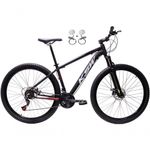 Bike aro 29 em alumínio, nova na caixa a pronta , produto com ótima qualidade e acabamento, possui 24 marchas com sistema de alavancas rapid fire que a cada clique uma marcha é trocada, garfo com suspensão, sistema de freio a disco hidráulico(óleo). Bicicleta pré montada, vai precisar apenas fixar a roda dianteira, guidão, selim e pedais.